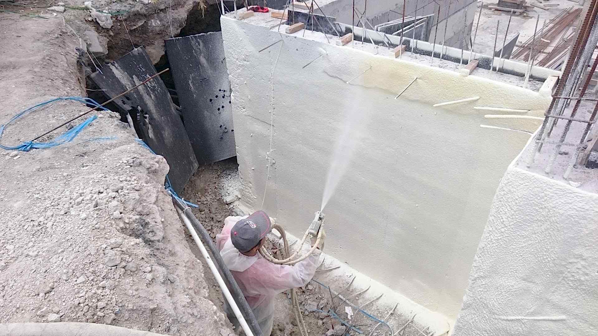 Temel perde beton yüzeyine herhangi bir maddeye ihtiyaç kalmadan herhangi bir sabitleyiciye ihtiyaç kalmadan yüksek basınç ile özel tabancasıyla püskürtülen sprey köpük tüm detaylara girinti ve çıkıntılara temas ederek en doğru ve en kaliteli izolasyonu sağlamaktadır.